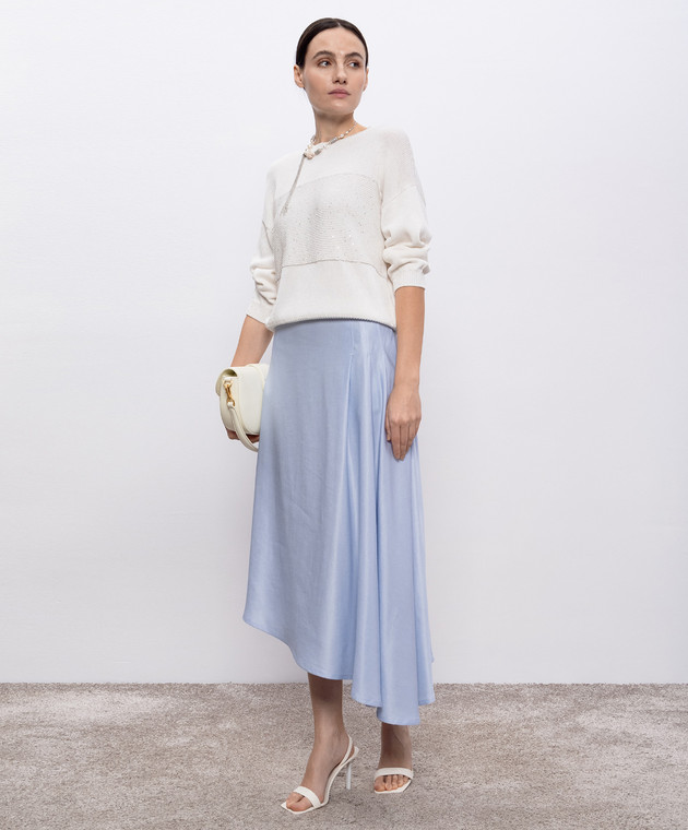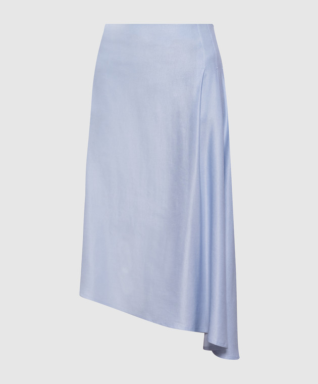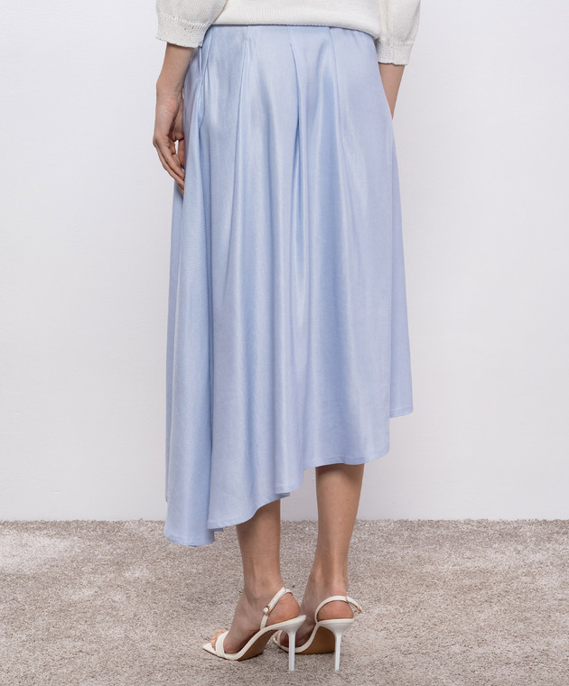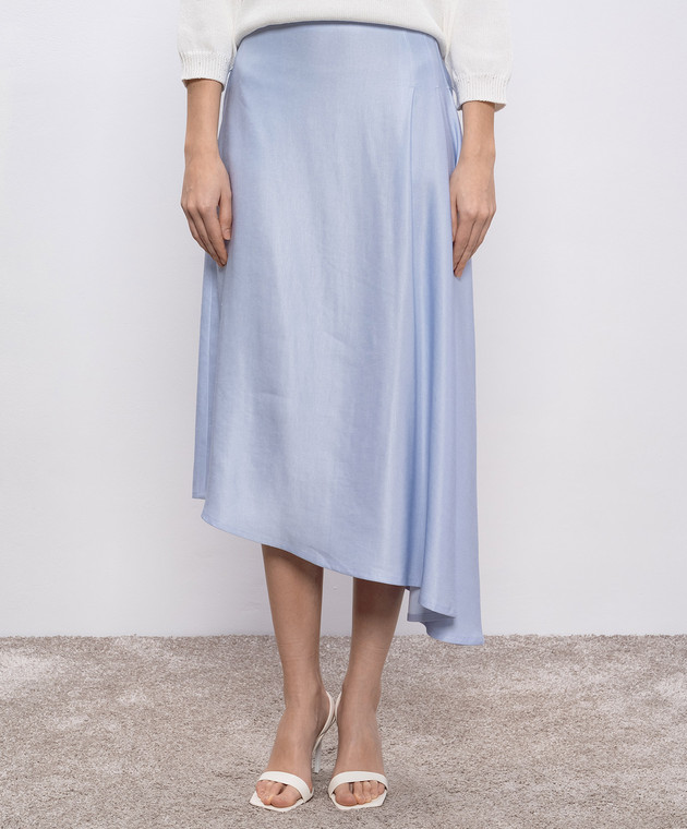 Блакитна спідниця асиметричного крою з льоном