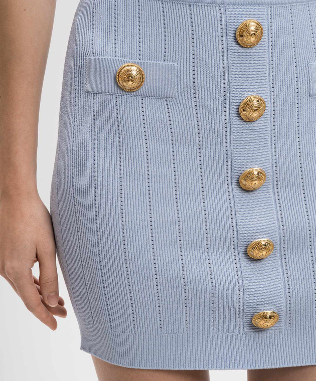 Блакитна спідниця міні з брендованими заклепками