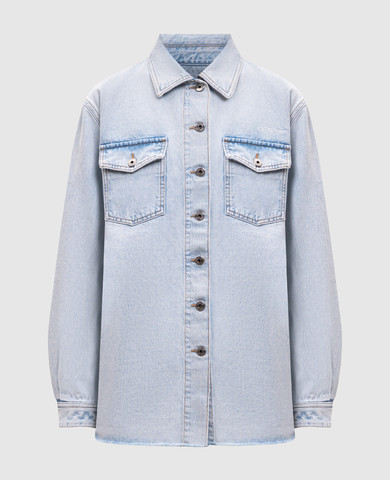 Блакитна укорочена сорочка в смужку