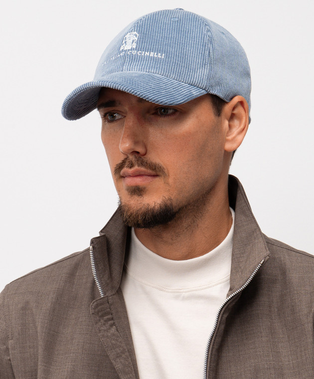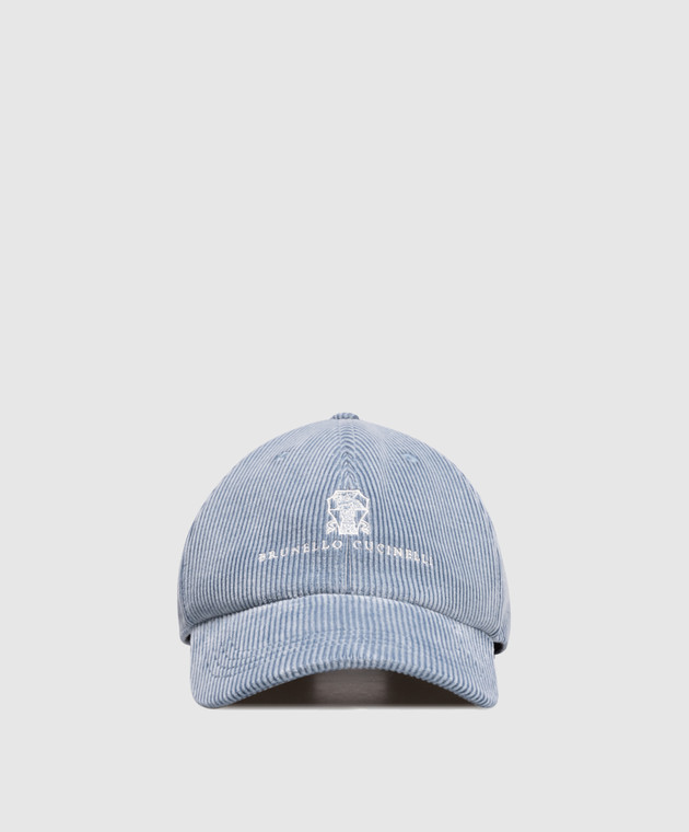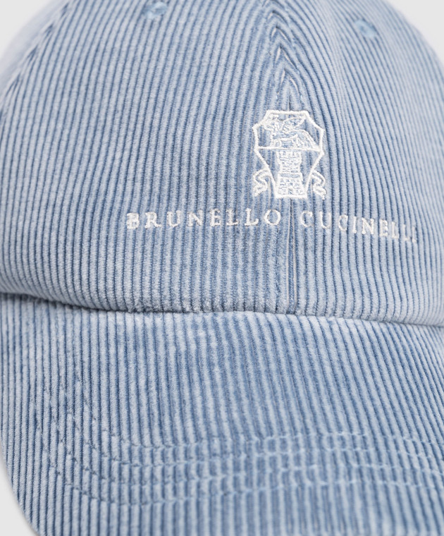 Блакитна вельветова кепка з логотипом
