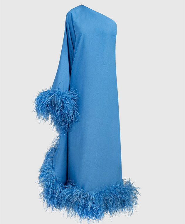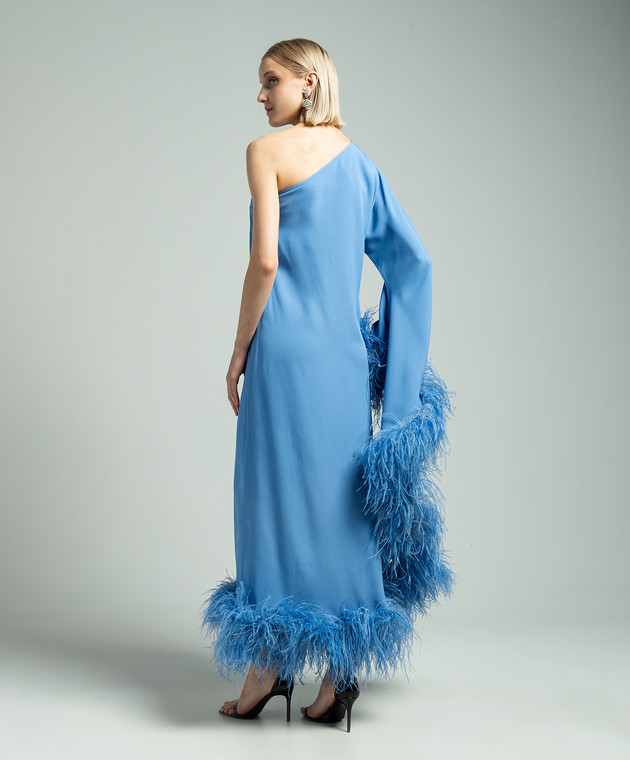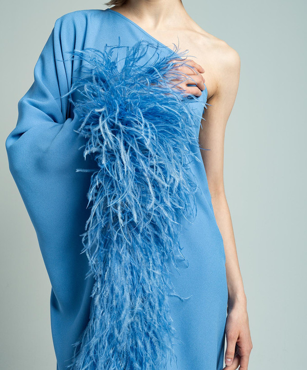 Блакитна асиметрична сукня Balear з пір'ям страуса