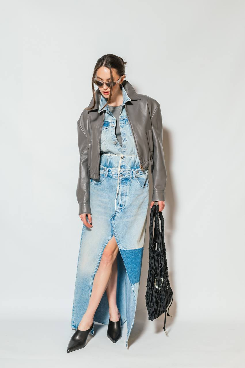 Блакитна джинсова сукня максі подвійної конструкції