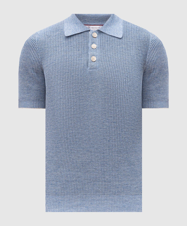Блакитне меланжеве поло з льоном