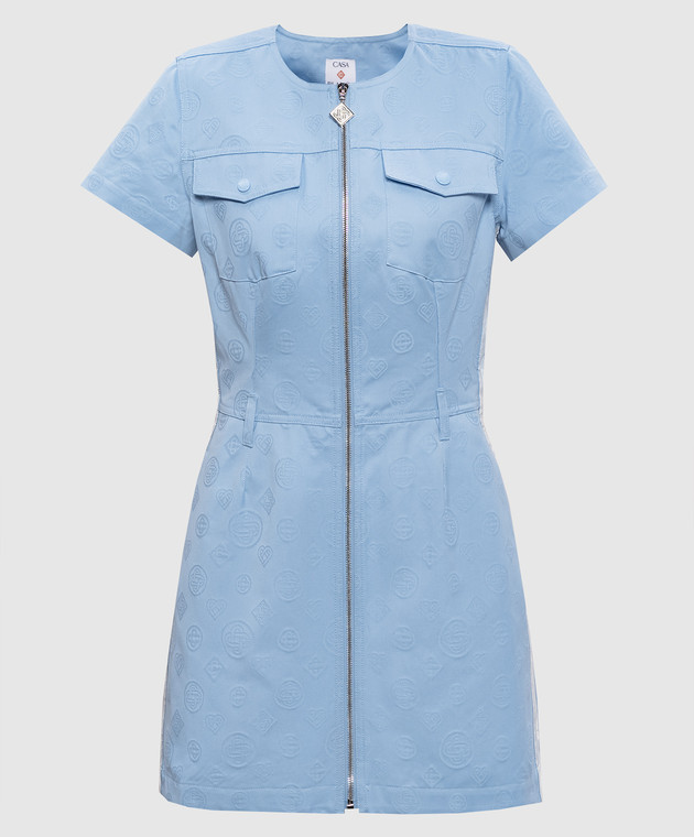 Блакитна сукня-сорочка міні у візерунок емблеми