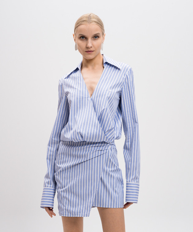 Блакитна сукня-сорочка в смужку