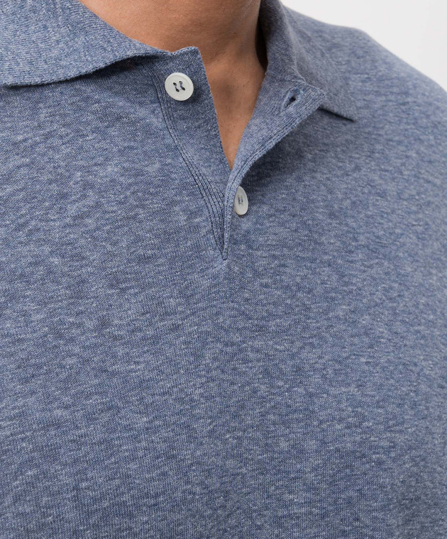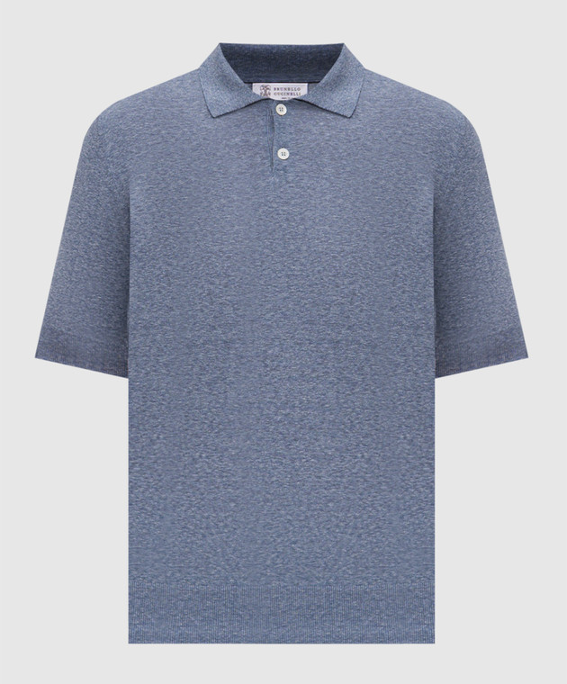 Блакитне поло з льону і шовку