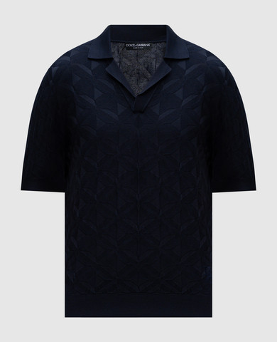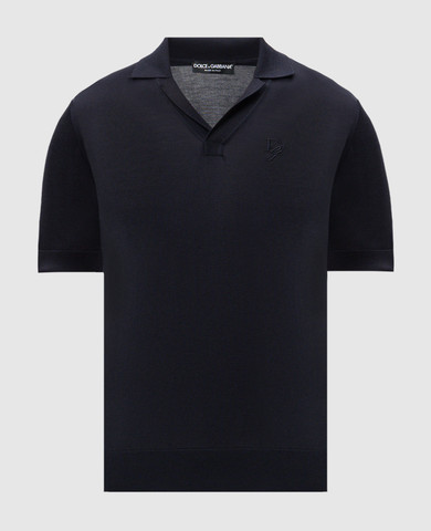 Синє поло із шовку з вишивкою монограми логотипа DG