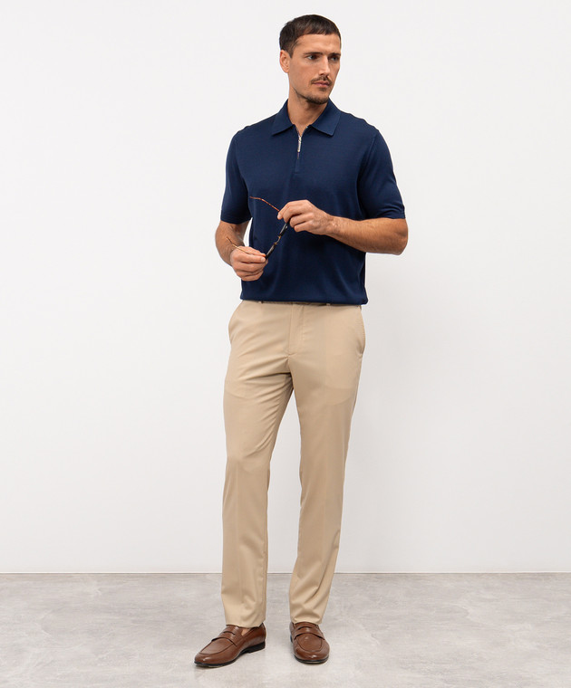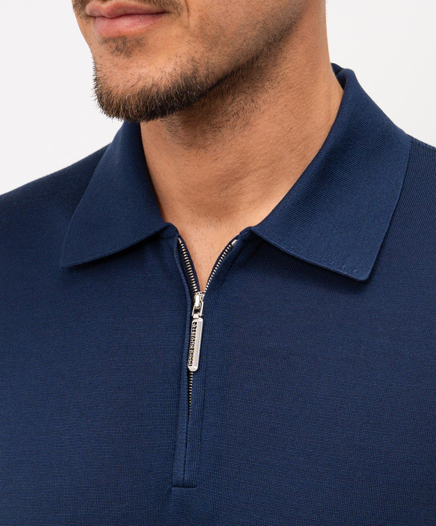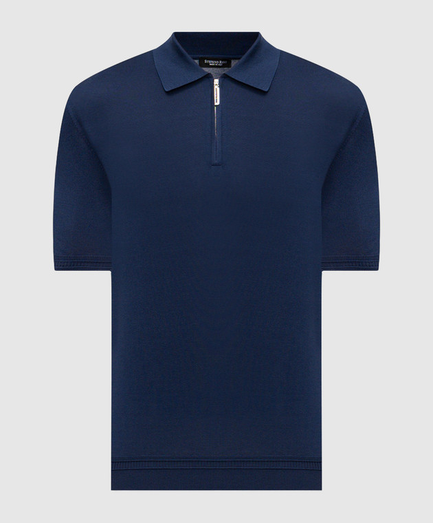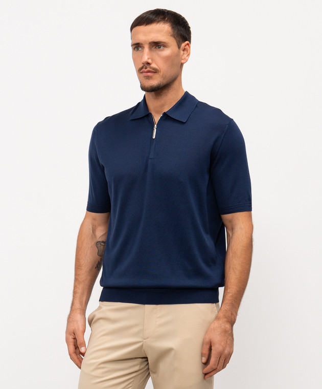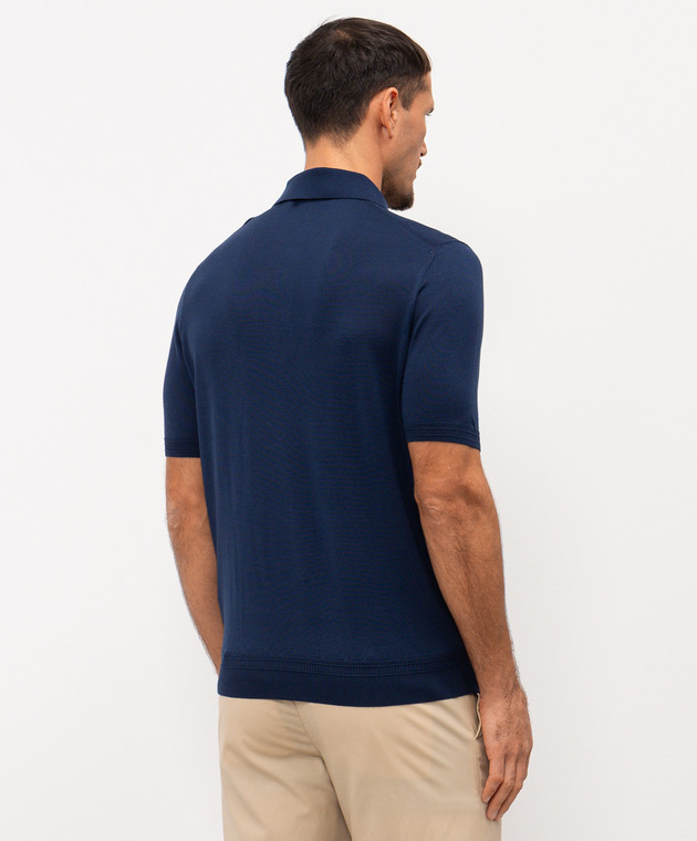 Синє поло із шовку з вишивкою монограми логотипа