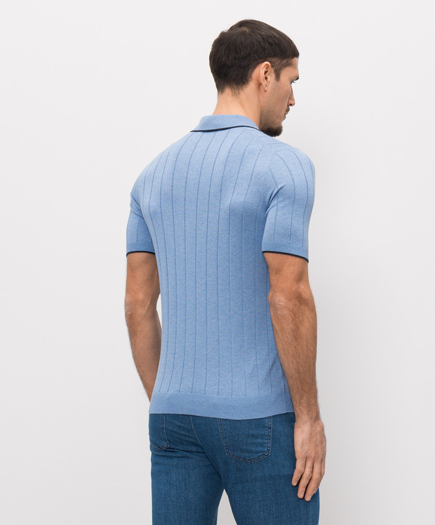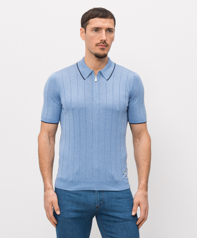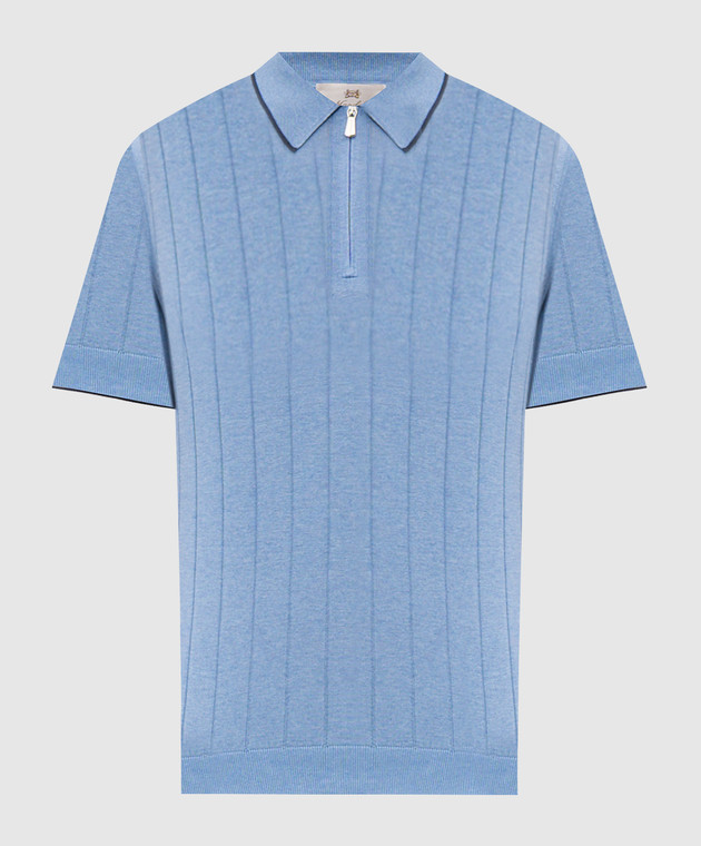 Блакитне поло із шовку в смужку