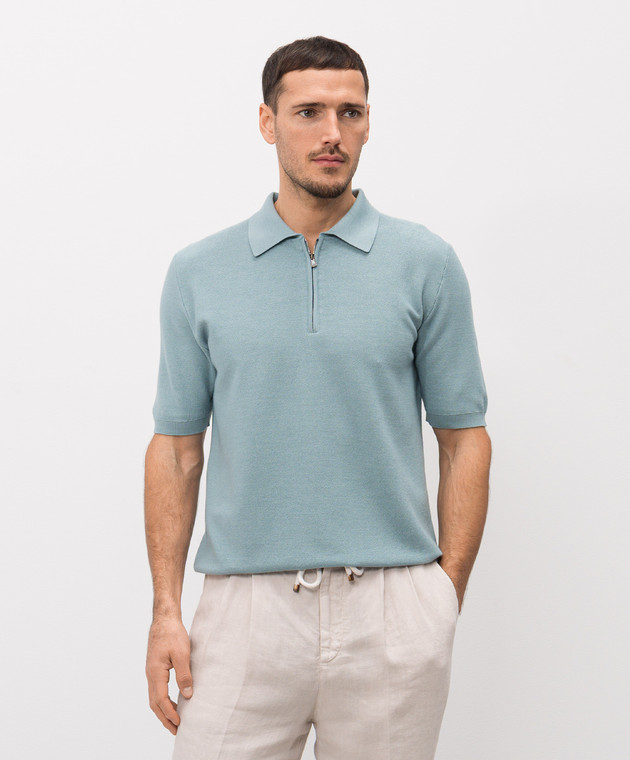 Блакитне поло з вовни, шовку і кашеміру
