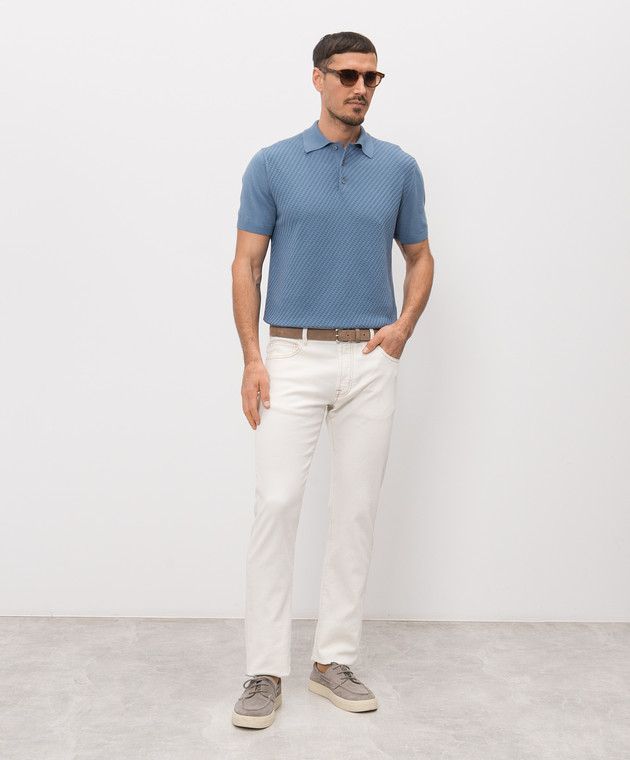 Блакитне поло з шовком в тканий візерунок