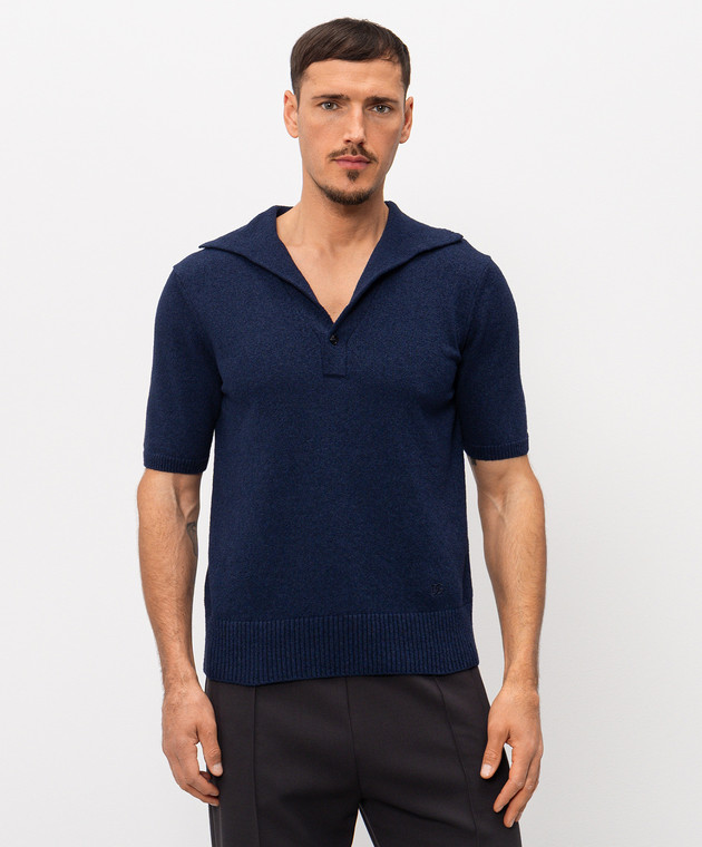 Синє поло з вишивкою монограми