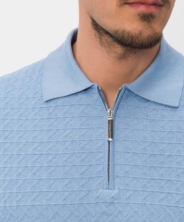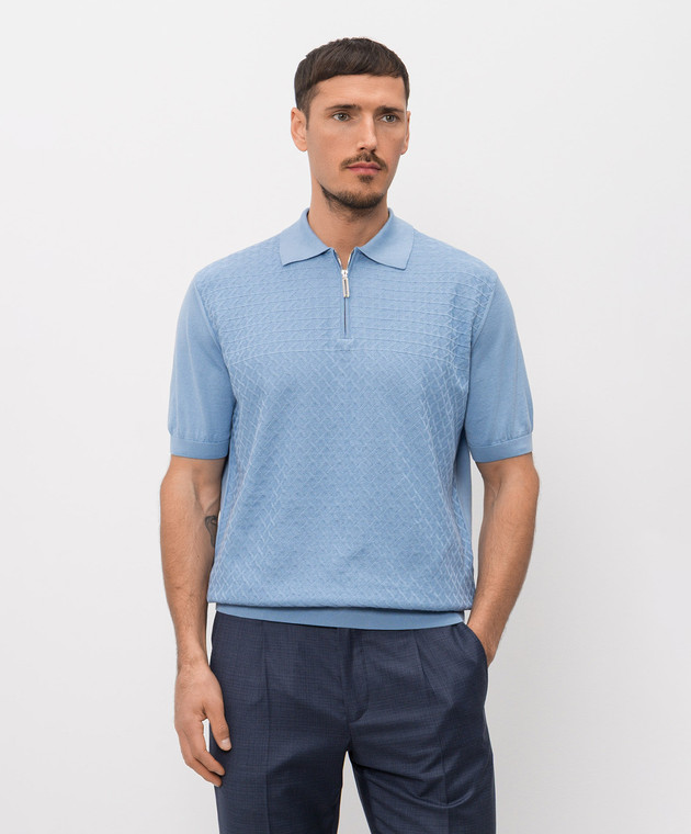 Блакитне поло в тканий візерунок