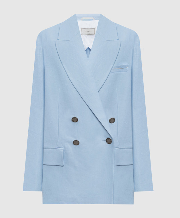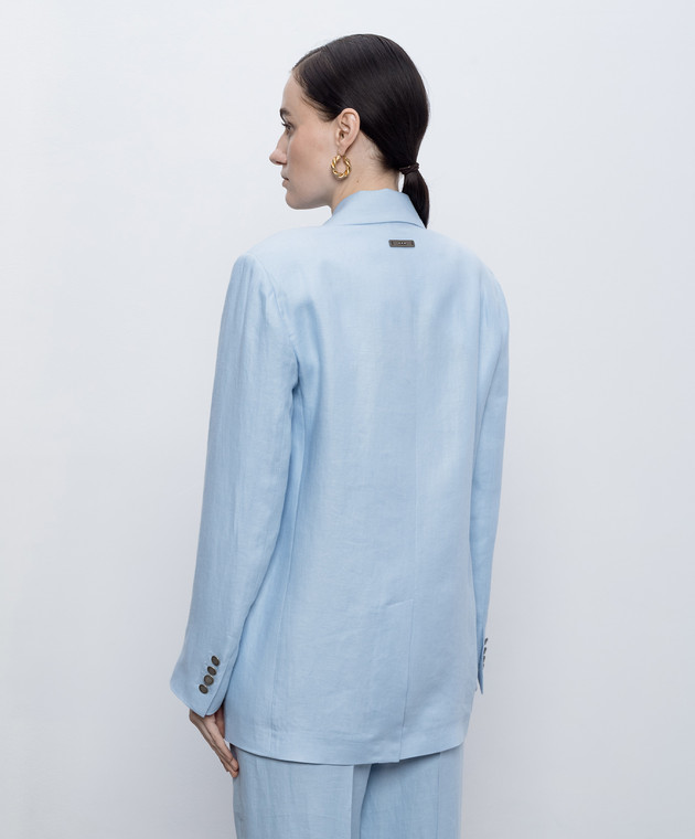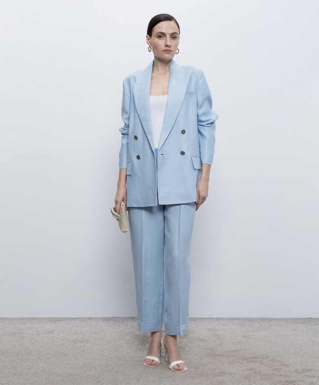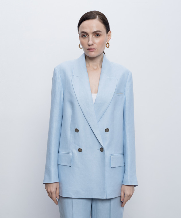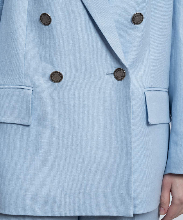 Блакитний двобортний жакет з льону