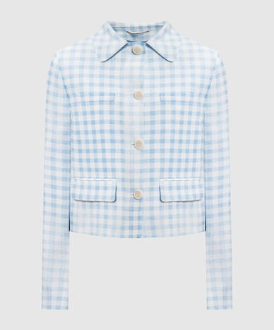 Блакитний двобортний жакет MSTGREMBO з вовни