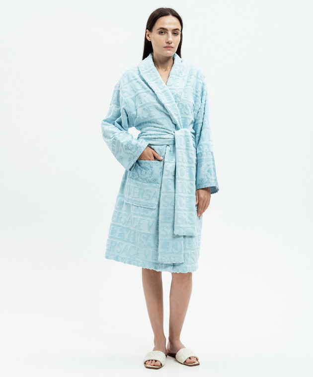 Блакитний халат у візерунок Versace Allover з принтом Barocco