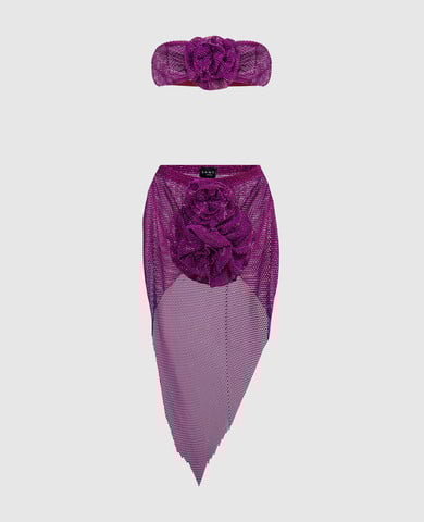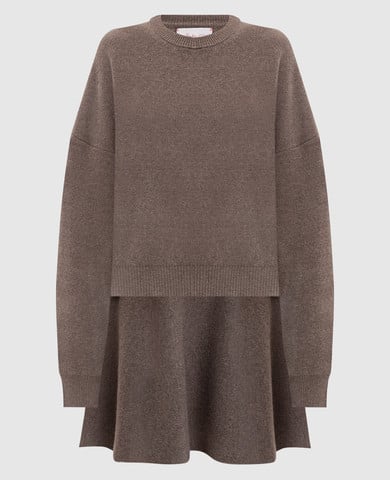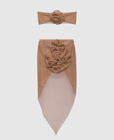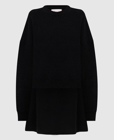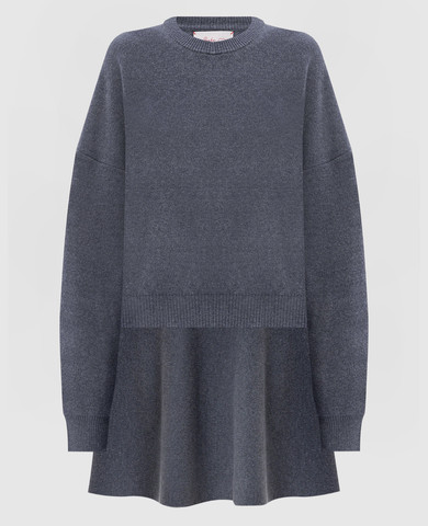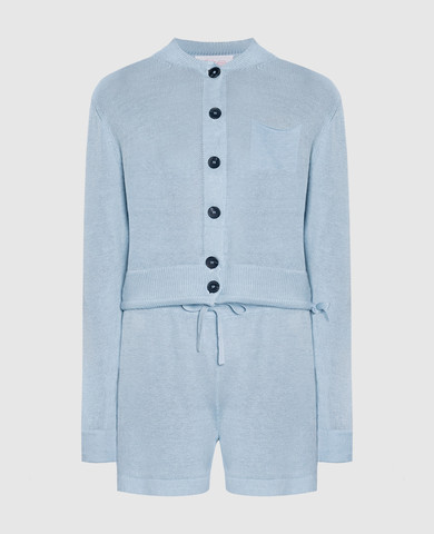 Блакитний костюм із топа та спідниці-плісе з вовни
