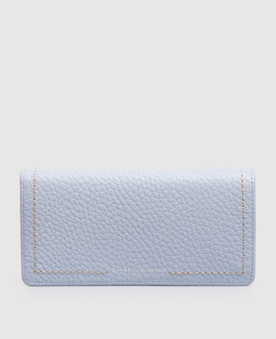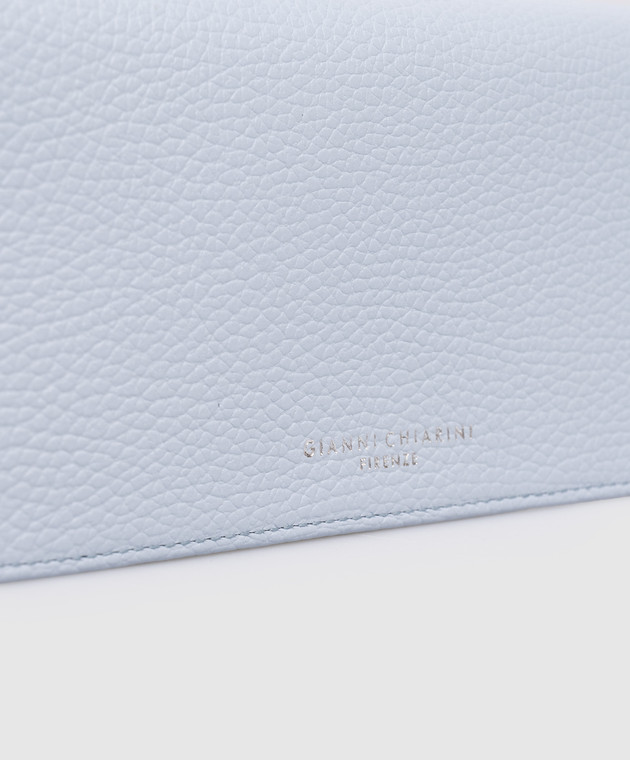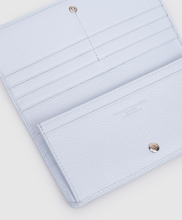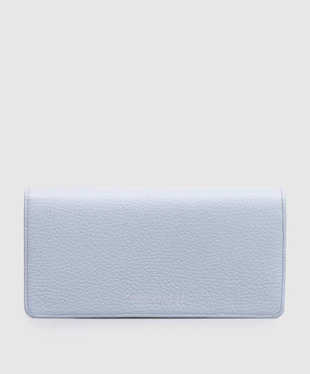 Блакитний шкіряний гаманець з принтом логотипа