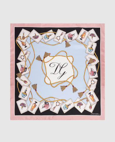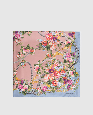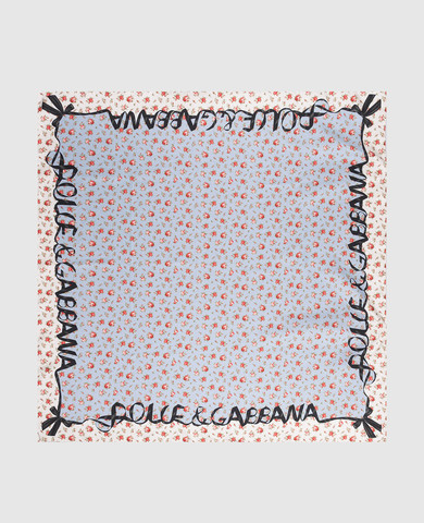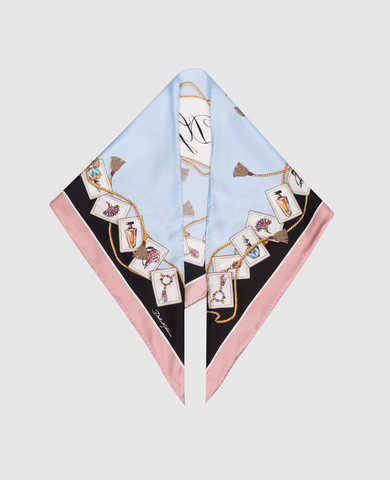 Блакитна хустка із шовку в принт