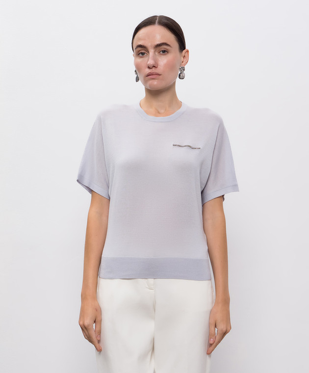 Блакитний топ з кашеміру та шовку