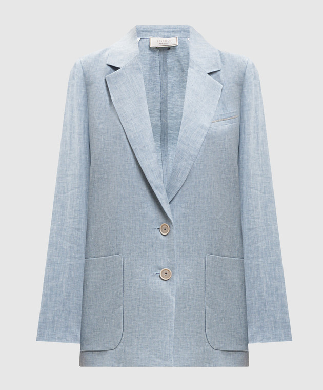 Блакитний жакет з льону з ланцюжком моніль