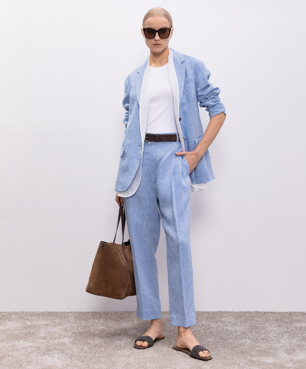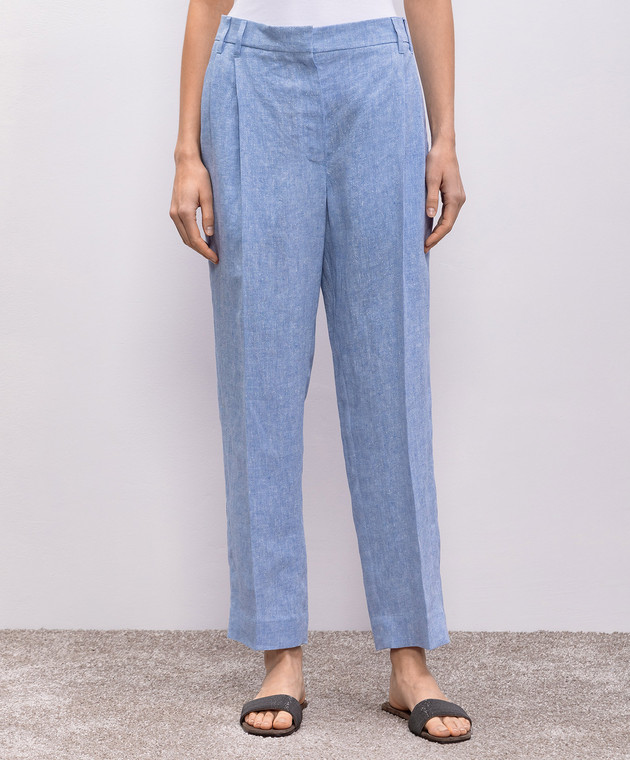 Блакитні штани з льону з люрексом