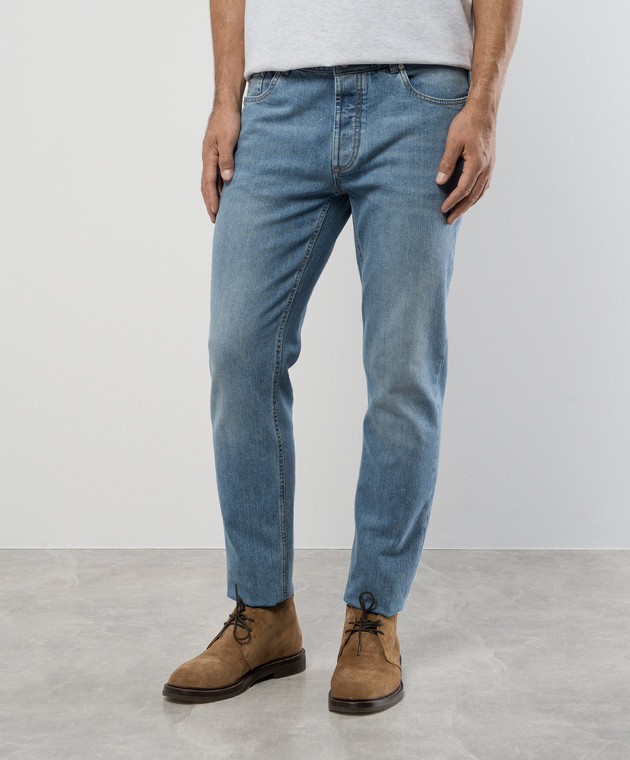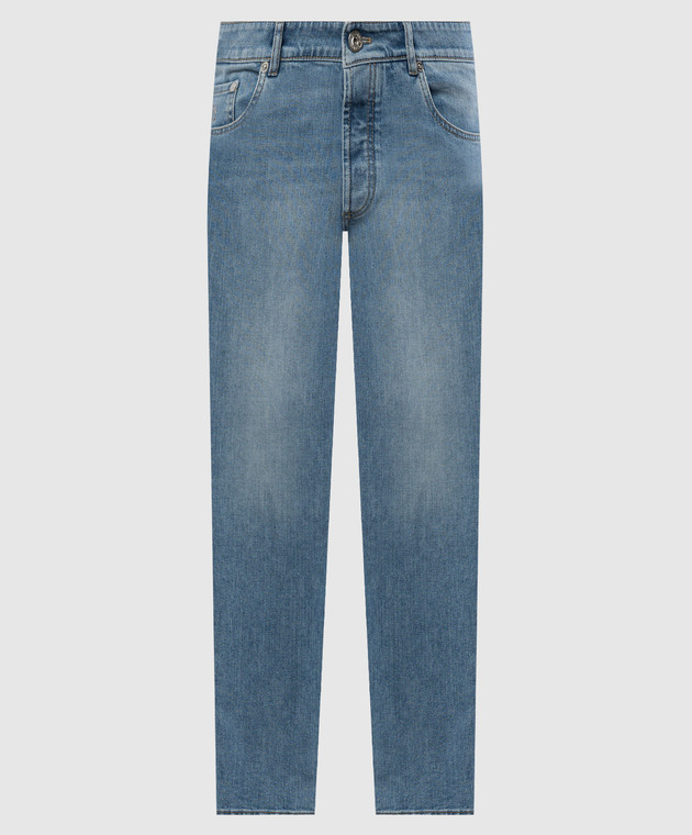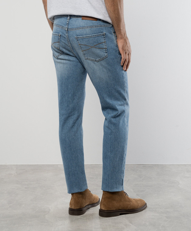 Блакитні джинси з ефектом потертості з патчем логотипа