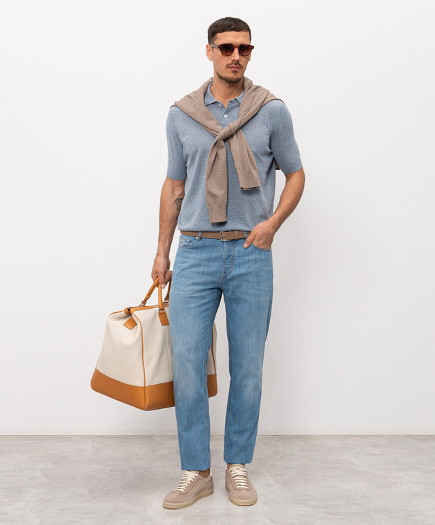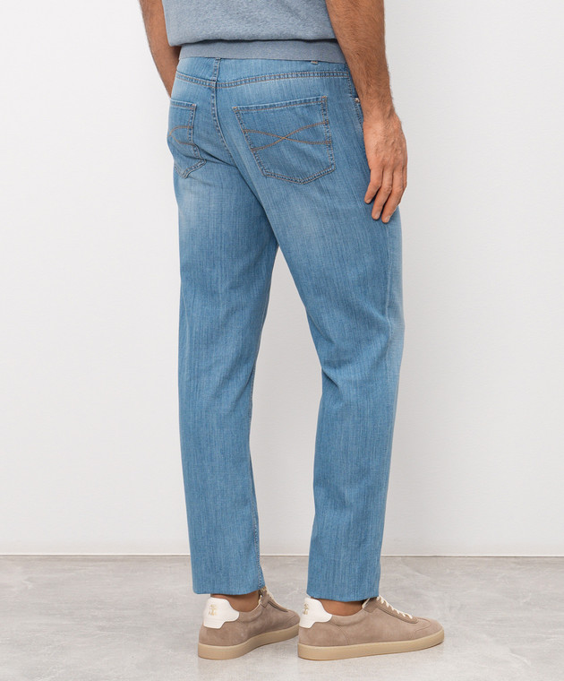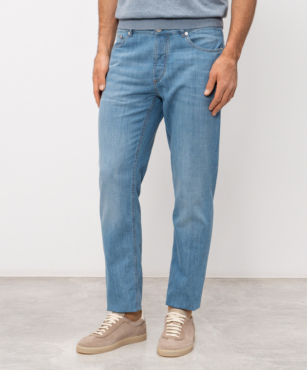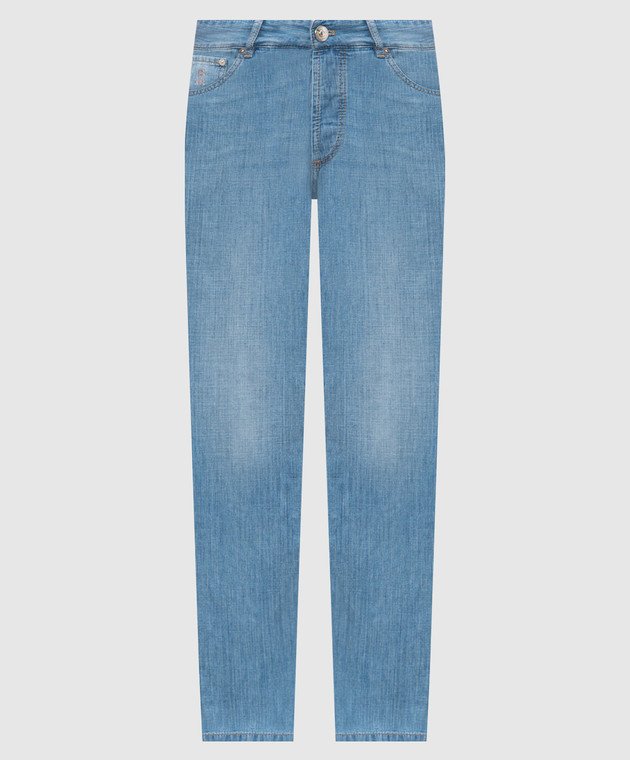 Блакитні джинси з вишивкою емблеми