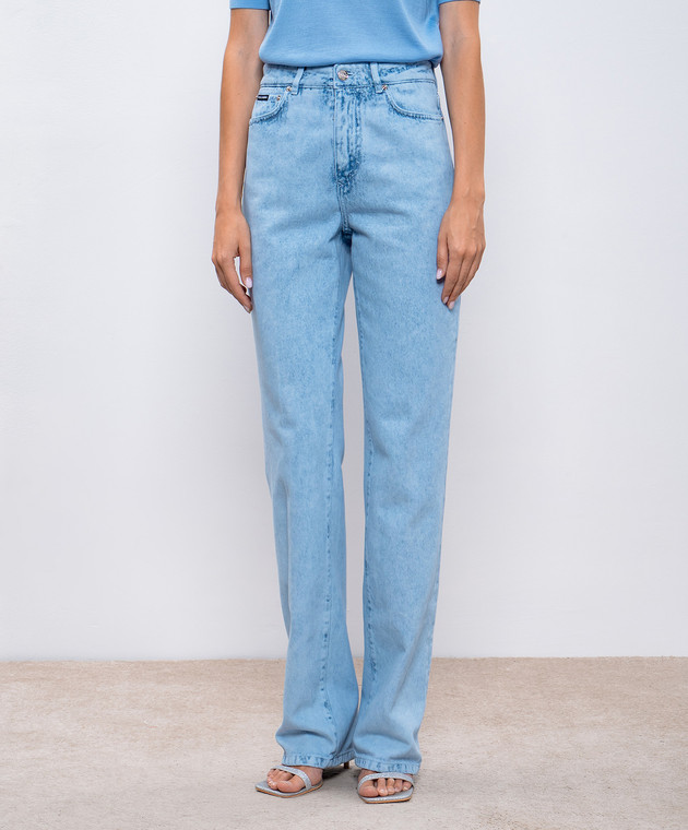 Блакитні джинси з вишивкою логотипа