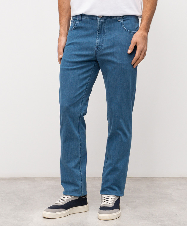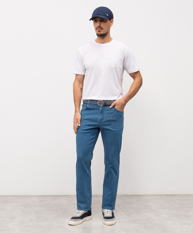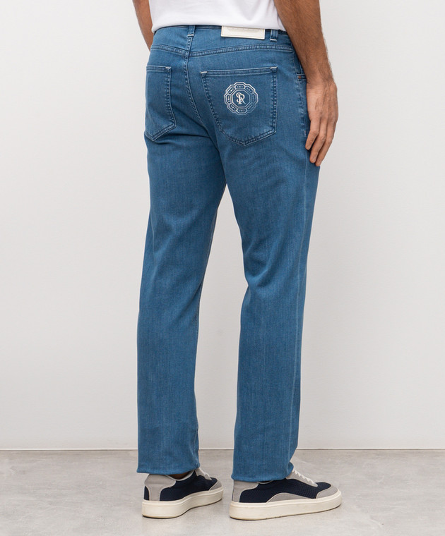 Блакитні джинси з вишивкою монограми