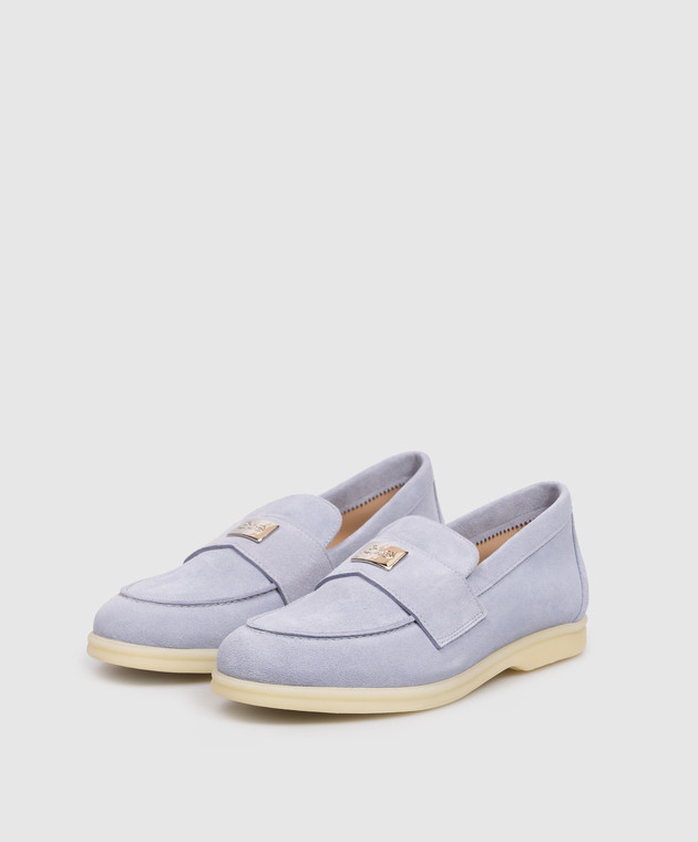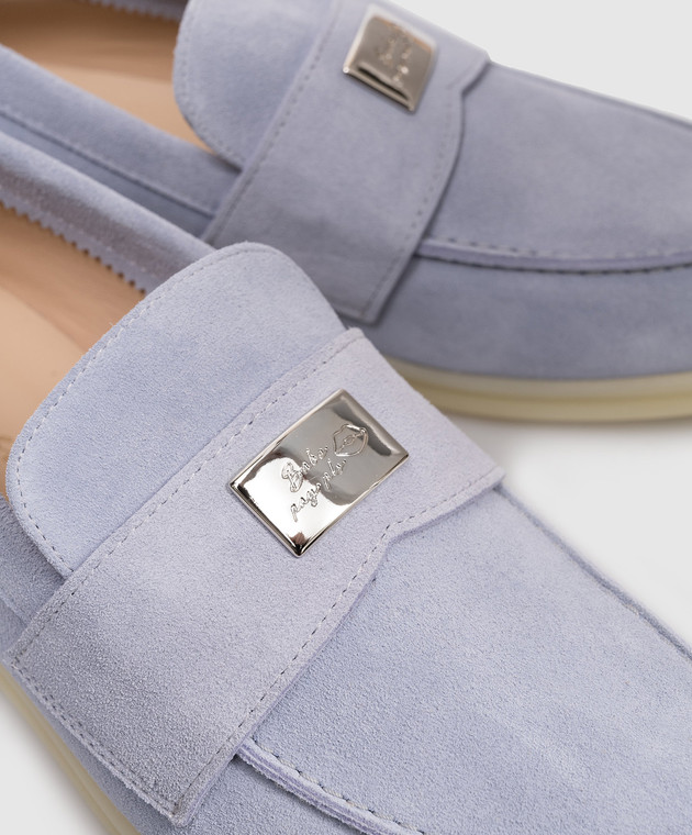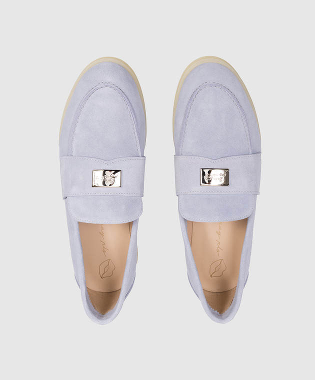 Блакині замшеві лофери з гравіюванням логотипа