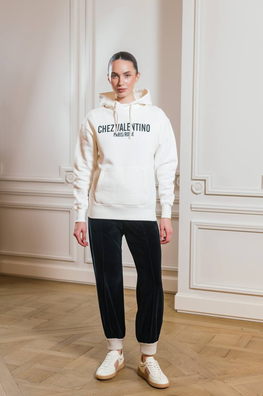 Біле худі з принтом CHEZ VALENTINO