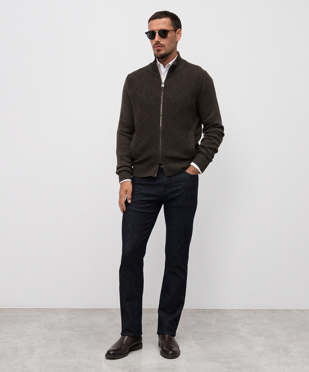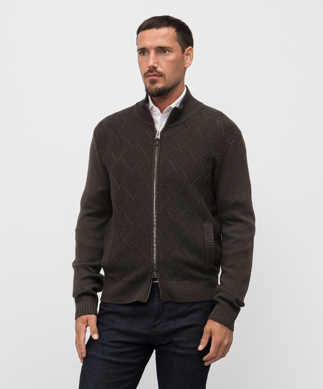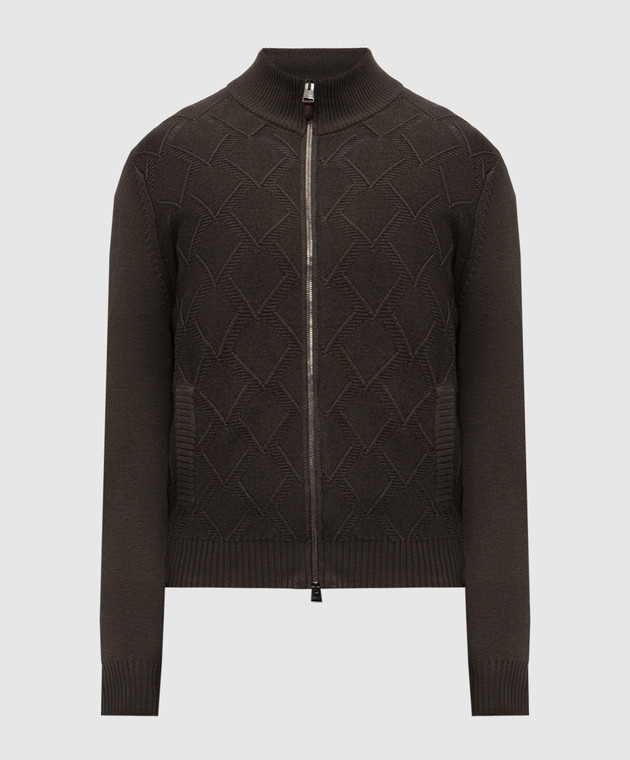 Коричневий кардиган з вовни мериноса у візерунок