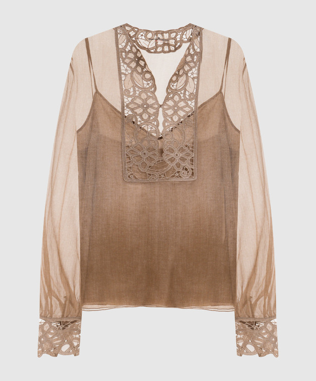 Коричнева блуза із шовку