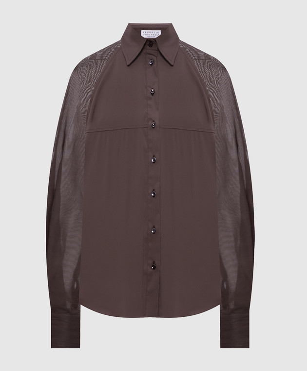 Коричнева блуза з ланцюжком моніль
