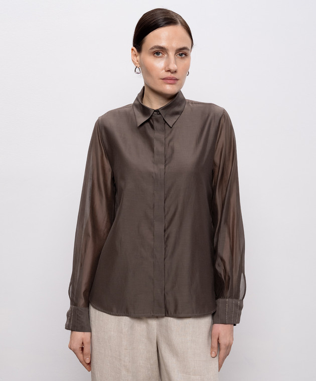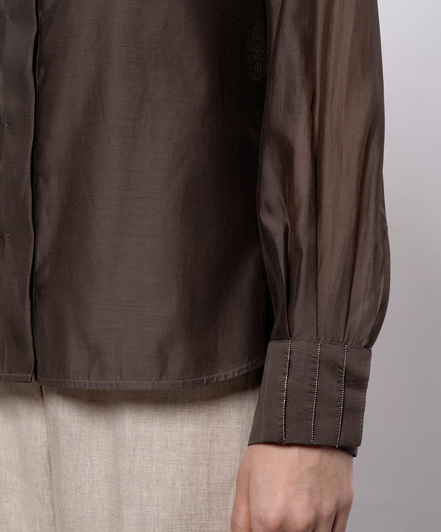 Коричнева блуза з шовком