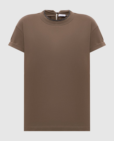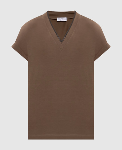 Коричнева футболка з кашеміром та шовком з люрексом