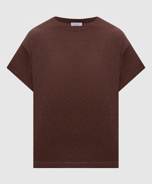 Коричнева футболка з кашеміром та шовком з люрексом