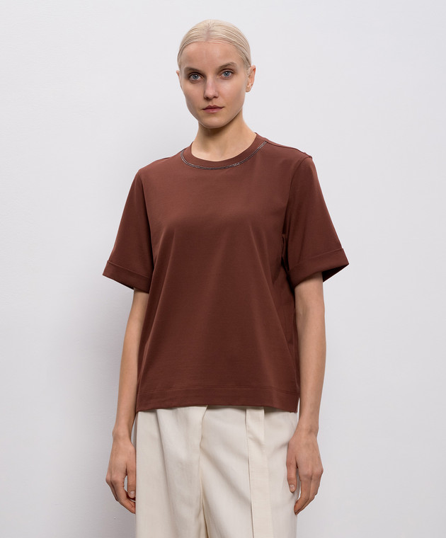 Коричнева футболка з відворотами