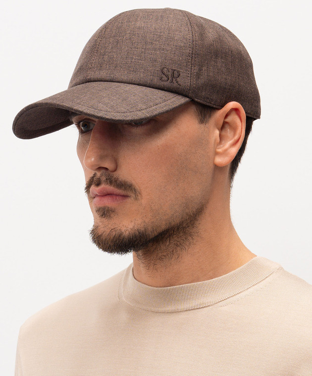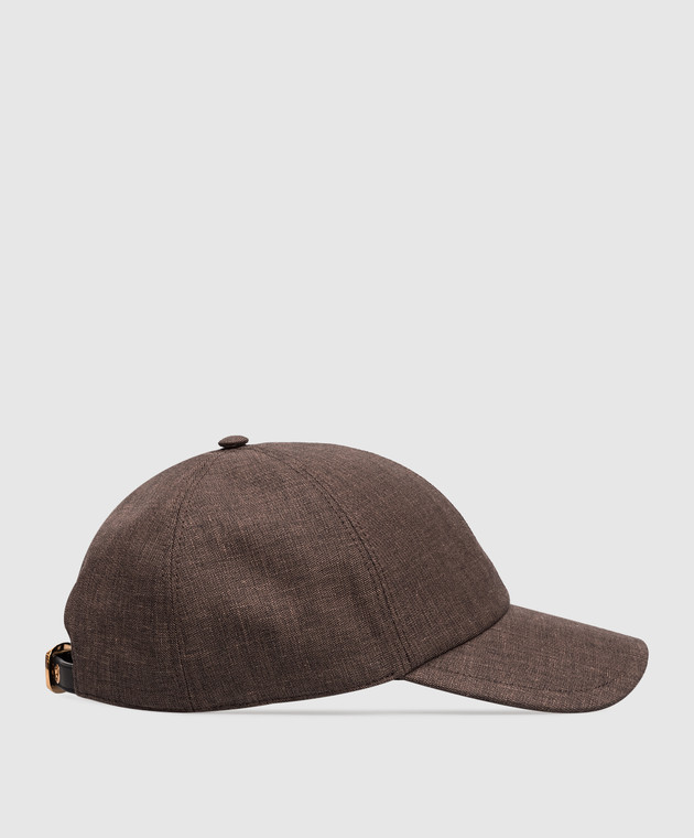 Коричнева кепка з льону, вовни та шовку