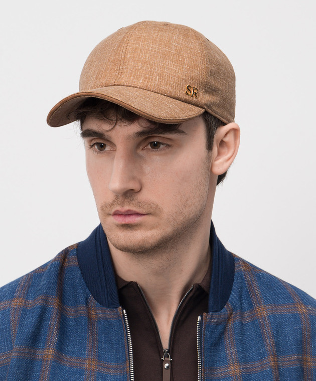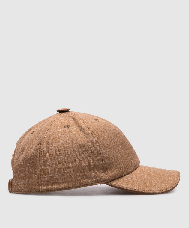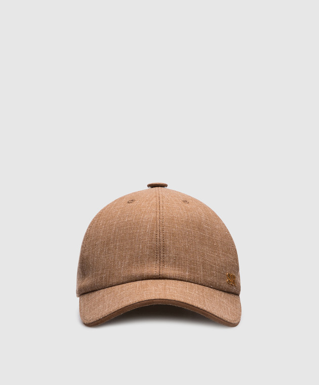 Коричнева кепка з вовни, шовку та льону з логотипом