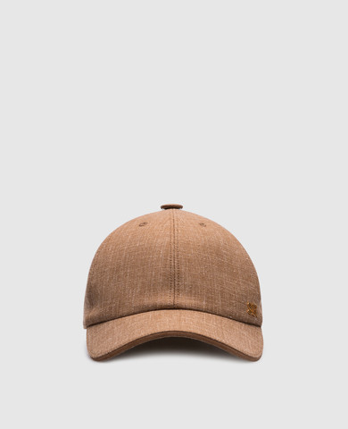Коричнева кепка з вовни, шовку та льону в клітинку