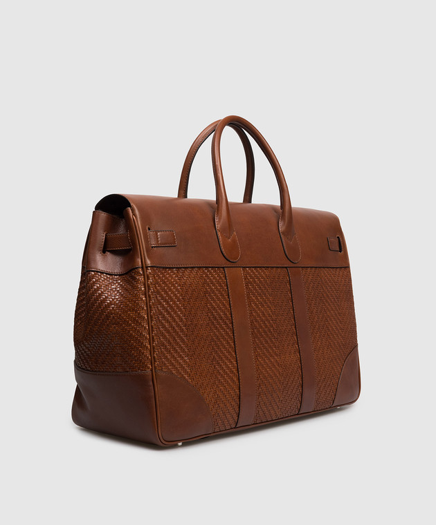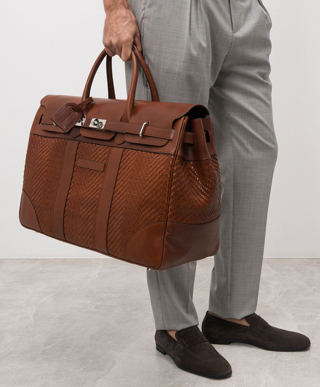 Коричнева шкіряна дорожня сумка з логотипом