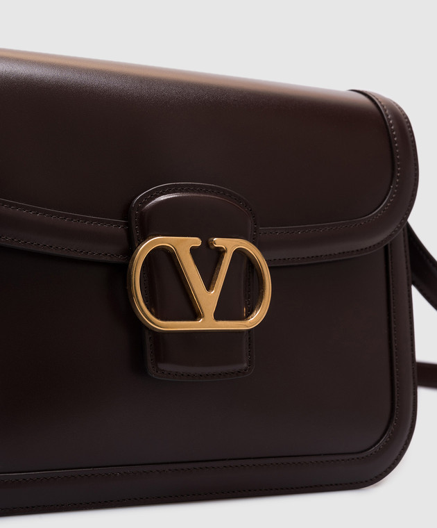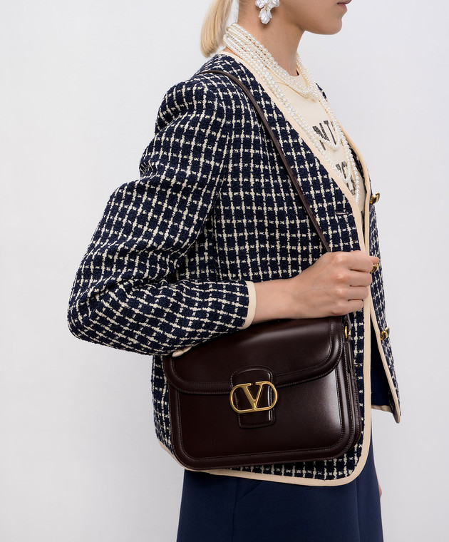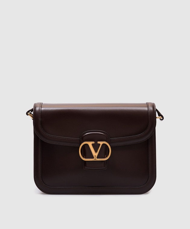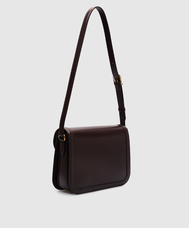 Коричнева шкіряна глянцева сумка-месенджер з логотипом