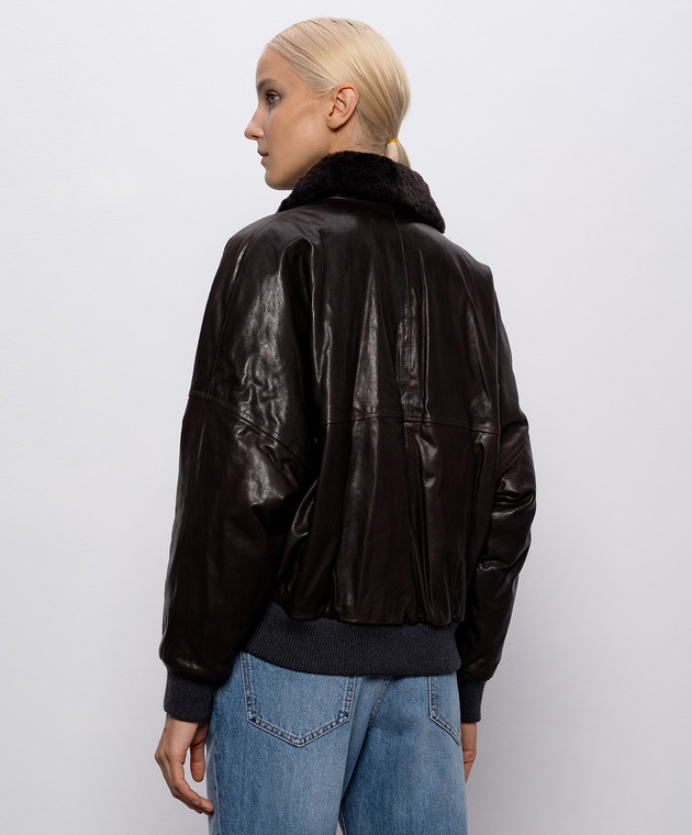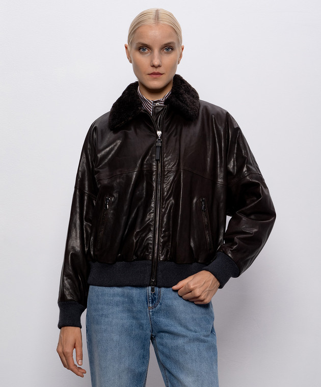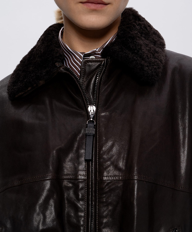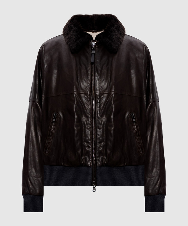Коричнева шкіряна куртка з овчиною