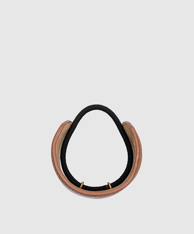 LELET NY Коричнева шкіряна резинка для волосся Heidi Pony з тисненням логотипа LELFW241941