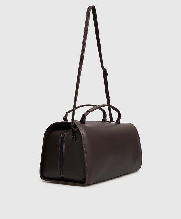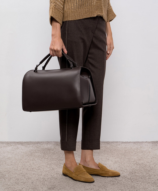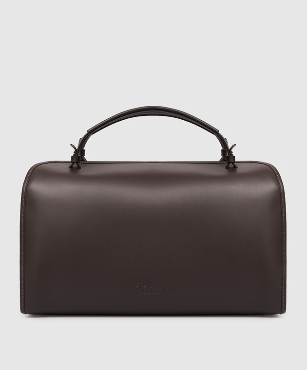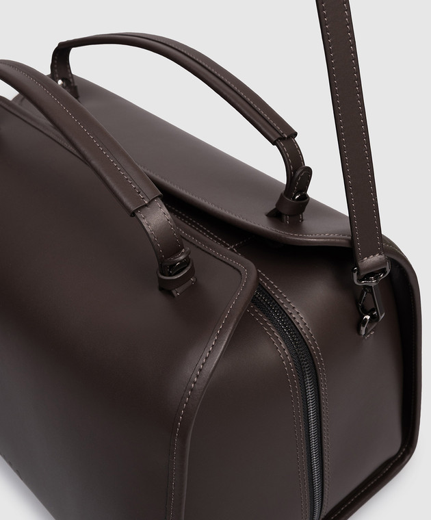 Коричнева шкіряна сумка-боулер з логотипом