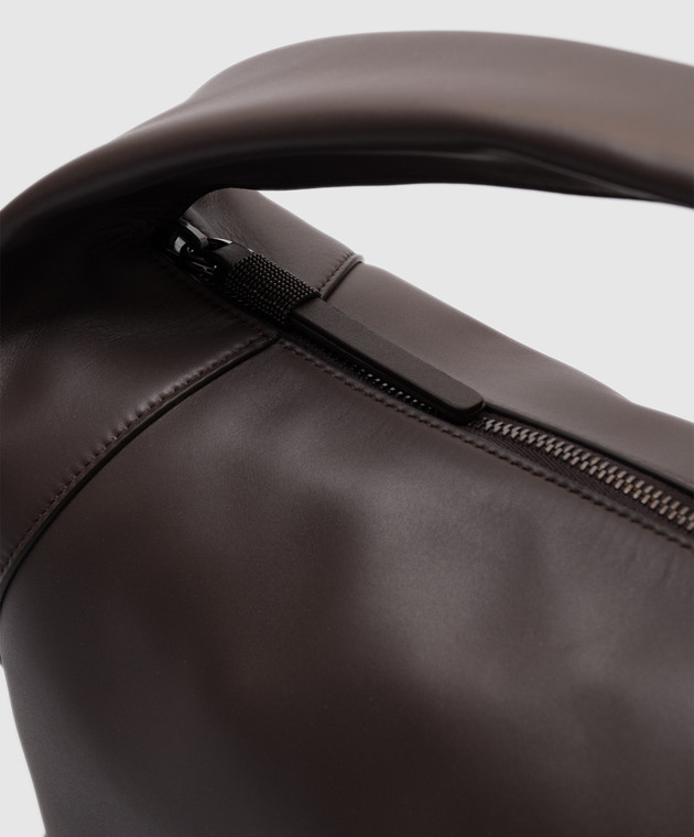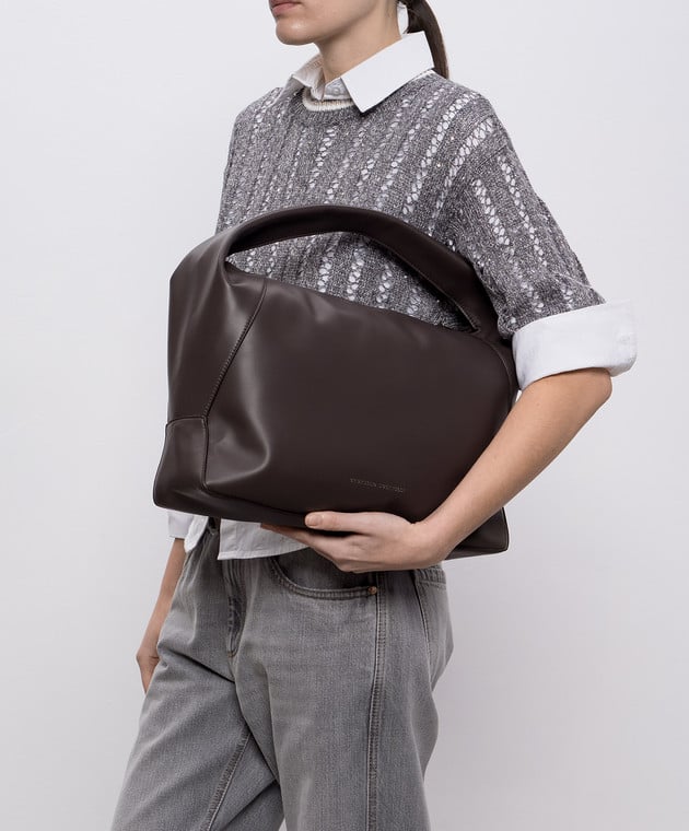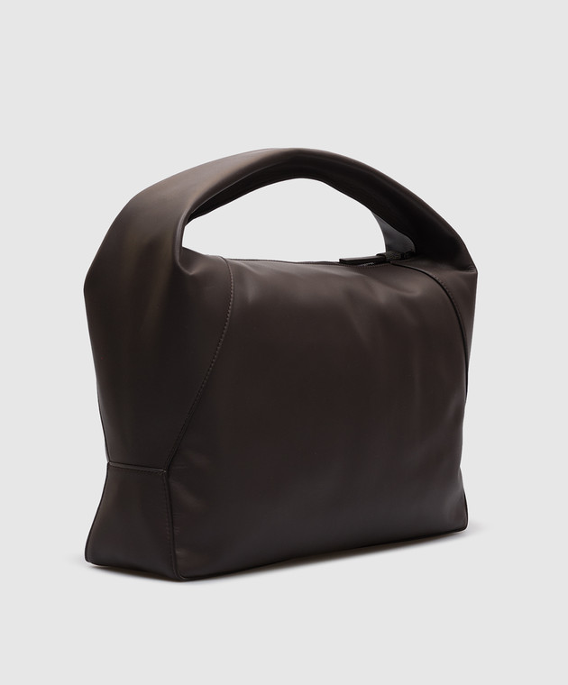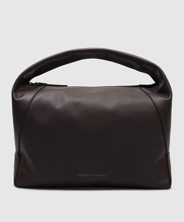 Коричнева шкіряна сумка Duo з принтом логотипа