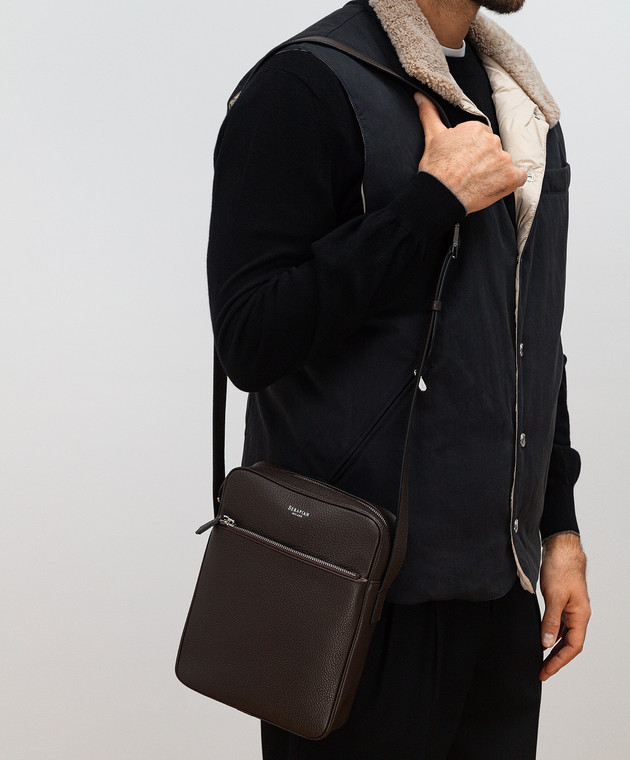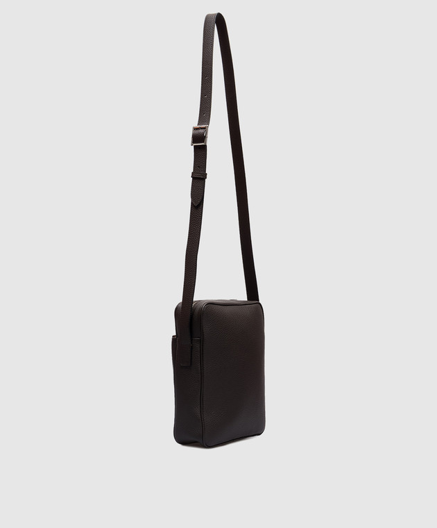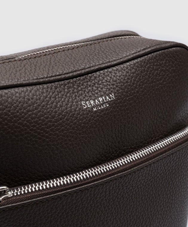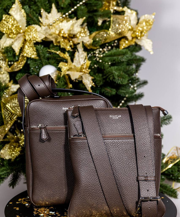 Коричнева шкіряна сумка Flat North South з принтом логотипа