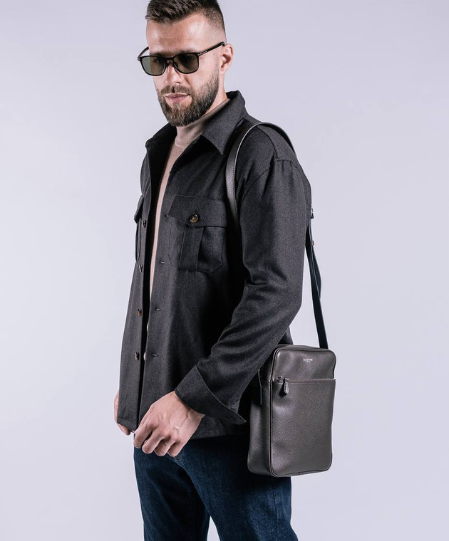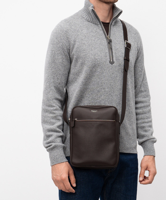 Коричнева шкіряна сумка NORTH SOUTH з логотипом